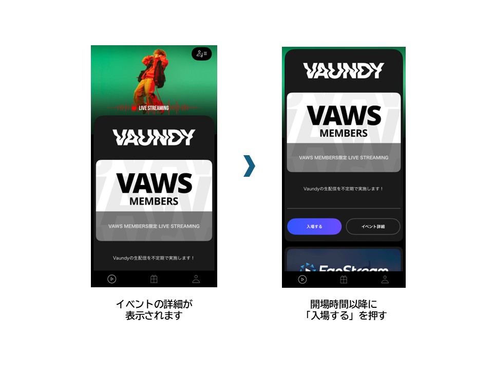 「FanStream」アプリの使い方をご確認のうえ、事前にログイン・入場をお試しください。